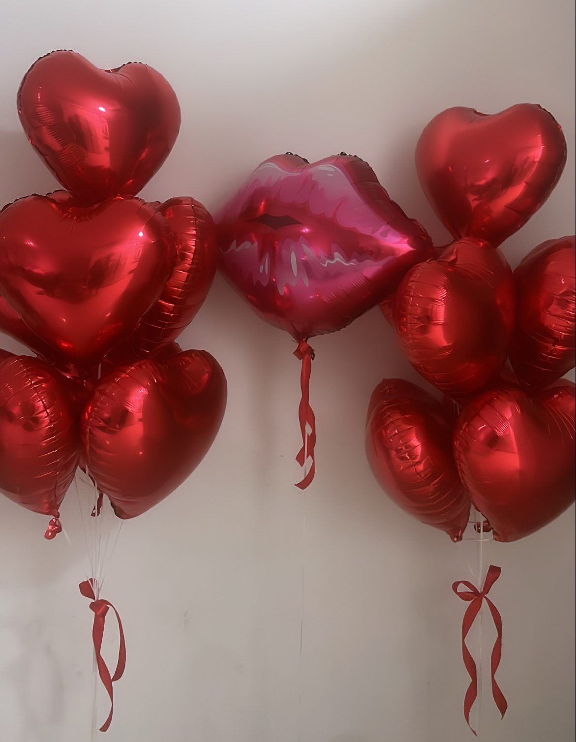 2 זרי לבבות אדומים + בלון שפתיים – בלונים רומנטיים שניתן להוסיף לכל מתנה ולכל אירוע .