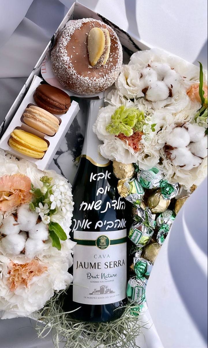 שמפניה פרחים מעוצבים ומבחר מתוקים